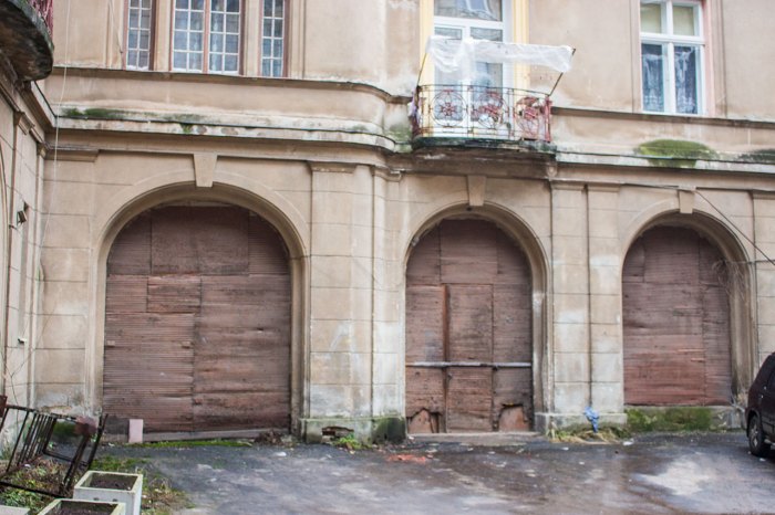 Однією з будівель, що найбільше збереглися, прийнято вважати будинок з пасажем на площі Григоренка, 5. Підприємець Якоб Грюнер вирішив вести тут бізнес і побудував будинок з пасажем, вхід до якого прикрашає витончений кований вензель.