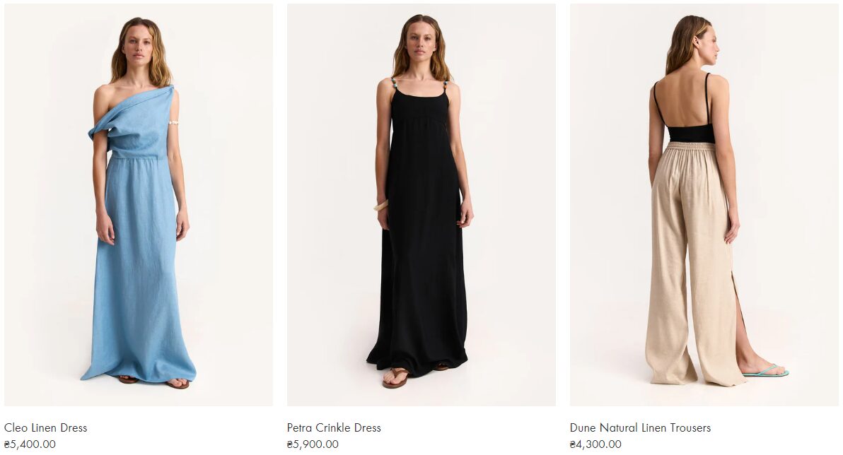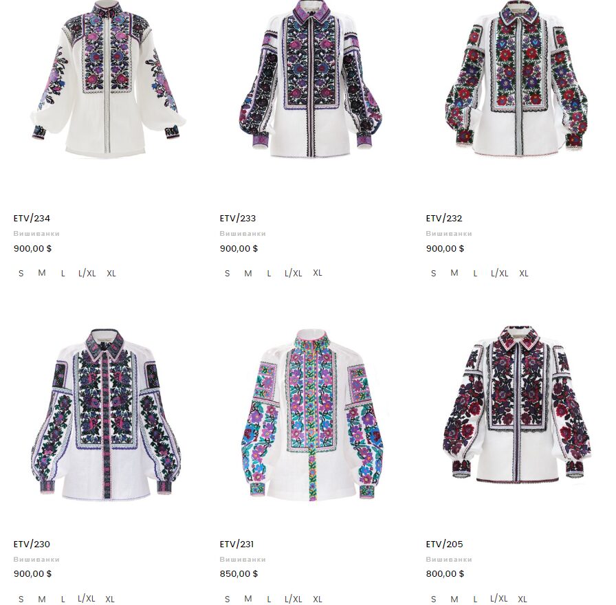 Ціни на сайті вказані в доларах. Якщо захочете собі лляний жакет, то готуйте еквівалент 1350 доларів, а якщо жіночу маніжку, то 620 доларів. Жіноча безрукавка обійдеться у 1270 доларів, а святкова сукня з вишивкою у 3800 доларів.