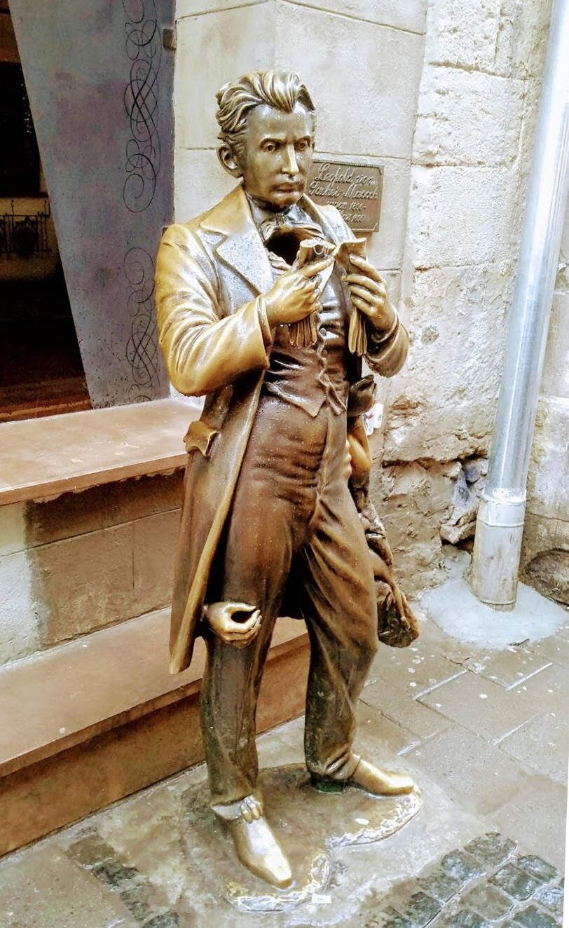 Пам’ятник Мазоху на тротуарі – це бронзовий Леопольд фон Захер-Мазох заввишки 170 см, який стоїть тут із 2008 року – подарунок від скульптора Володимира Цісарика. Письменник, який народився у Львові, дивиться на перехожих із загадковою усмішкою. У нього кілька рук і глибока кишеня – кажуть, якщо засунути туди руку, пощастить. Туристи обожнюють цю скульптуру: фотографуються, чіпають, сміються. Мазох став символом Сербської – трохи провокативним, але дуже львівським.